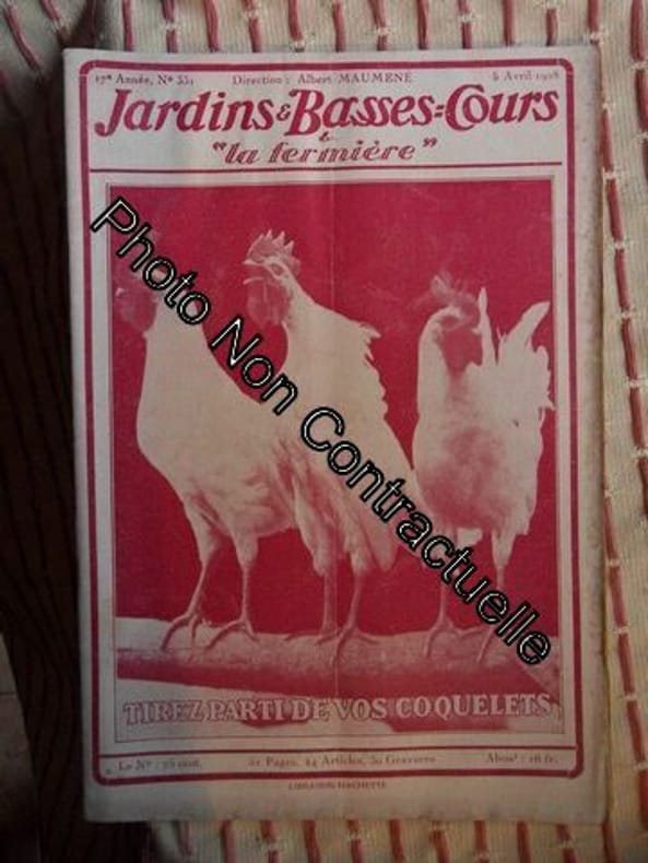 SOMMAIRE : LA QUESTION DU JOUR : ATTENTION AUX ESCARGOTS FRAUDÉS, p. 322.COMMENT MONTER UNE MEULE A CHAMPIGNONS, p. 323.METTEZ EN POTS LES OIGNONS A FLEURS, p. 326.BANCS RUSTIQUES ET ROBUSTES, p. 33o.POULAILLER DANS UN MASSIF, p. 331.CHARPENTE SOLIDE AUX OISEAUX EN PEAU,p. 336.Radis et Navets sur vieilles couches, p. 324; Carottes nouvelles en Hiver, p. 324; Combattez la Cécidomye du Chrysanthème, p. 324; Contre le chancre du Melon, p. 325; Débarrassez vos Rosiers des Pucerons, p. 325 ; Eau chaude insecticide, p. 325; Combattre la rouille de l’Estragon, p. 325; Eviter la tavelure, p. 325; Ennemis de l’Oseille, p. 325; Honoraires d’un mandataire aux Halles, p, 328; Bouturage des Rosiers, p. 328; Avantage des Espaliers et contre-Espaliers, p. 328 ; Formes à donner aux Arbres, p. 329; Fruits bons à cueillir, p. 3*29;Améliorez la Poule locale, p. 332; Poules domestiques pour les Chasses, p. 332 ; Accouplements consanguins chez les Volailles, p. 333 ; Comment faire des Chasses, p. 333 ; Guérissez vos Ruches de la Loque, p. 334; Faites d’excellent Raisin, p. 334; Réussir le Poulet en croûte, p. 334; Contre la gale des Chats, p. 335 ; Coccidiose intestinale des Volailles, 334; Mise en herbier des Champignons, p. 335 ; Récoltez des fleurs de Bleuets, p. 335.; Nettoyage du Linoléum, p. 335; Pour bleuir l’Acier, p. 335; Empêcher votre Bicyclette de rouiller, p. 335; Substances économiques et riches, p. 335.TRAVAUX DU MOIS : Le Jardin Potager, p. 324 ; Le Jardin d’Agrément, p. 328; Le Jardin Fruitier, p. 329.INFORMATIONS DE LA QUINZAINE, p. 321.AGENDA DE LA QUINZAINE, p. 322.NOTRE CONCOURS DE PROPAG NDE, p. 335.NOS RENSEIGNEMENTS MUTUELS, p. 338.NOS CONSULTATIONS, p. 339.HALLES ET MARCHÉS, p. 340. Classification Dewey : 636-Elevage