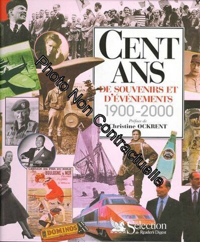 Sélection du Reader's Digest 1998 464 pages 1998. 464 pages. En 464 pages et plus de 2 000 illustrations cet ouvrage vous invite à parcourir un siècle d'Histoire de mode d'art et de techniques.Vous y trouverez :Les événements politiques : mobilisation générale du 1er août 1914 débarquement en Provence (15 août 1944) premiers pas sur la Lune(21 juillet 1969) chute du mur de Berlin (9 novembre 1989). Les petits et grands moments de la vie quotidienne : premier traitement du cancer aux rayons X (1910). naissance de la2 CV (1948) apparition du bikini (1965) lancement du loto (1976). Les personnages célèbres chanteurs acteurs écrivains peintres tels Piaf Gérard Philipe Depardieu Proust. Picasso sans oublier Roosevelt Churchill de Gaulle. Plus qu'une collection de souvenirs plus qu'un rappel de ce qui nous avons vécu CENT ANS DE SOUVENIRS ET D'EVENEMENTS est une célébration du siècle qui s'achève