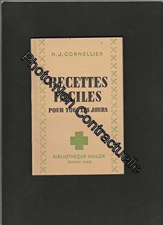 Bibliothèque Huilor. Non daté. In-12. Broché. Etat d'usage, Tâchée, Agraffes rouillées, Mouillures. 46 pages.. . . . Classification Dewey : 641.5-Cuisine, art culinaire