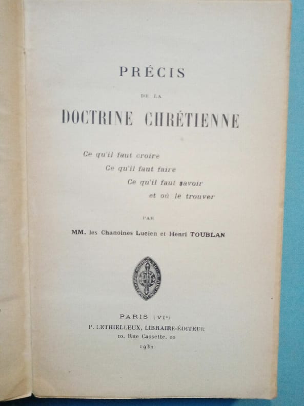 Lethielleux 1932 1932. Précis de la doctrine chrétienne - Toublan L. et H./ P. Lethielleux 1932