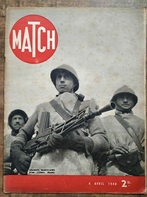 MATCH. 4 avril 1940. In-Folio. Broché. Bon état, Couv. convenable, Dos satisfaisant, Intérieur frais. environ 46 pages augmentées de nombreuses photos en noir et blanc et en couleurs dans et hors texte - 1er plat illustré d'une photo en noir et blanc. . . . Classification Dewey : 70.49-Presse illustrée, magazines, revues