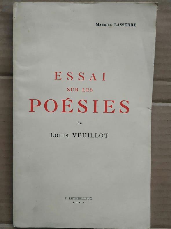 Etude des poèsies - "Oeuvres polémiques" et "Oeuvres lyriques" - de l'écrivain catholique Louis Veuillot (1813-1883) par le critique littéraire Maurice LASSERRE; note bibliographique de ses oeuvres poétiques; lettre-préface de Pierre FERNESOLLE.