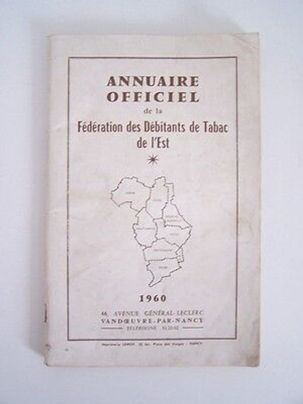 Éditions de l'est 1960 1960. ANNUAIRE OFFICIEL Fédé. Débitants TABAC de L'EST 1960
