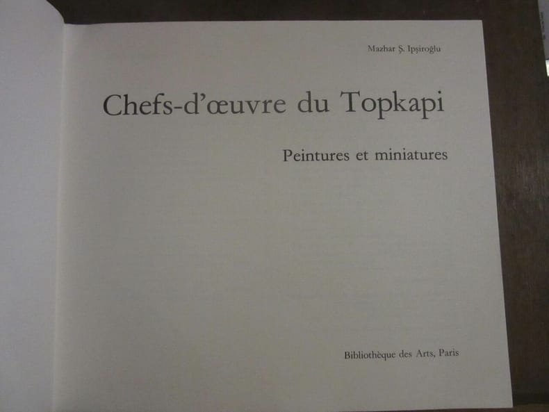 Sans date. Mazhar S.Ipsiroglu: Chefs-d'oeuvre du Topkaki/ Peintures et miniatures/ Bibliothèque des Arts Paris . bon état