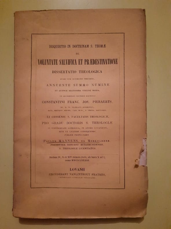 Sans date. Disquisitio in Doctrinam S. Thomae de Voluntate Salvifica Et Praedestinatione