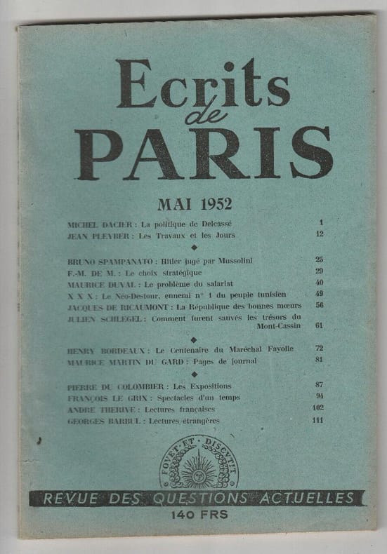 1952 1952. Exemplaire en bon état d'usage. Livre broché couverture souple. 124pp