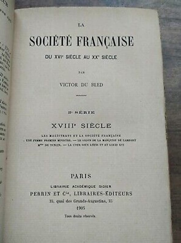 Perrin 1903 1903. Victor du Bled - La Société Française du XVIe au XXe siècle/ Perrin et Cie 1903