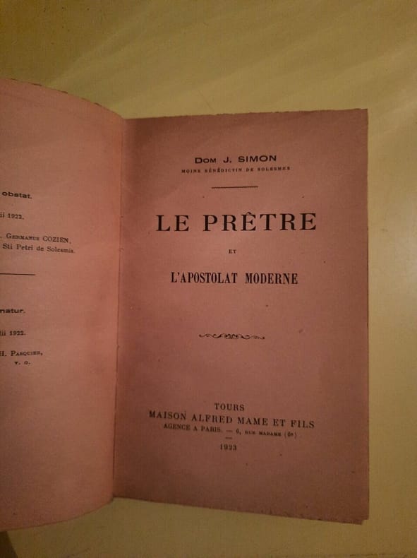 1923 1923. Dom J. Simon - Le Prêtre et l'Apostolat Moderne / Alfred Mame et Fils 1923