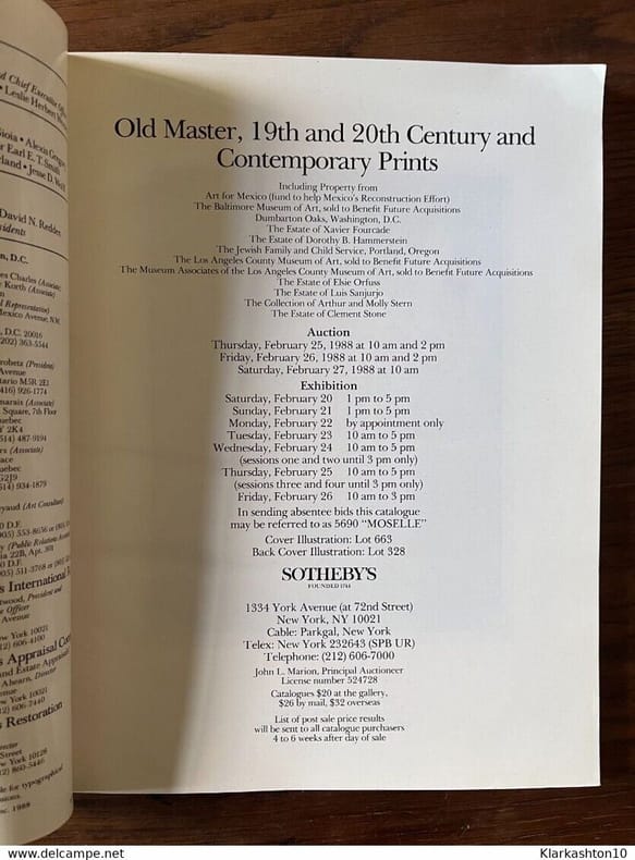 1988 1988. Sotheby's. Old master 19th and 20th Century and Contemporary Prints/ 1988
