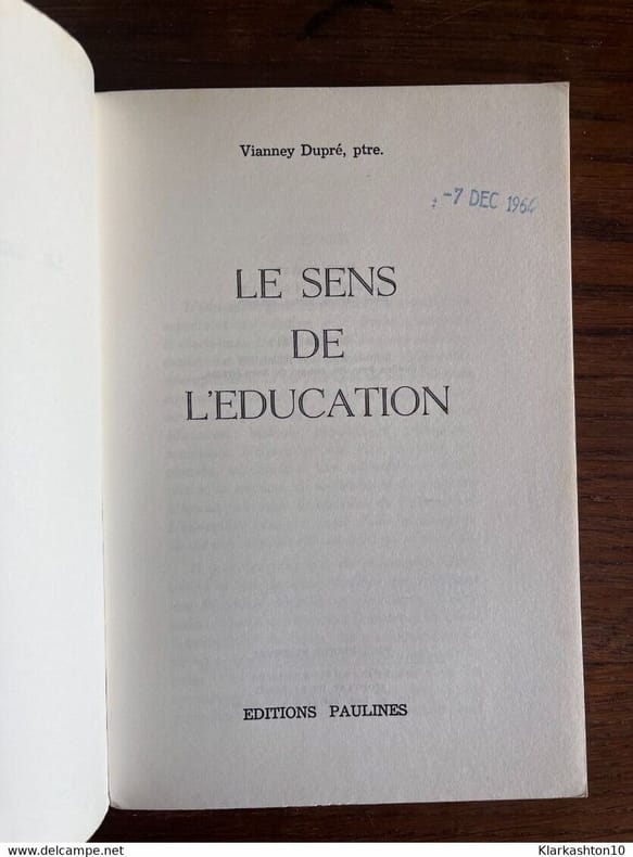 1964 1964. Vianney Dupré ptre: Le sens de l'education/ Paulines 1964