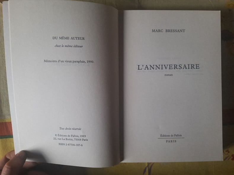 Editions de Fallois 1993 1993. Marc Bressant - L'Anniversaire / Editions de Fallois 1993