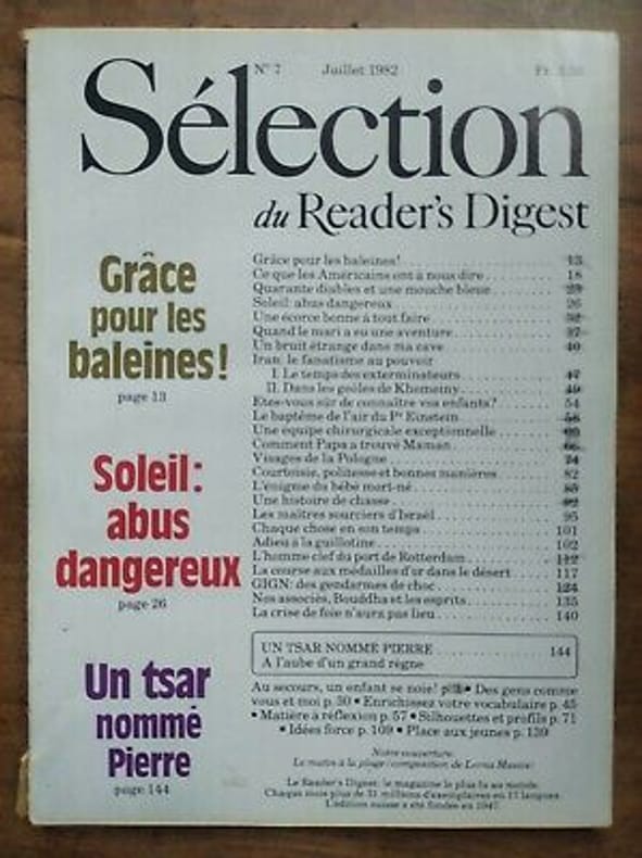 Sélection du Reader's digest 1982 1982. Sélection du Reader's Digest Nº7 / Juillet 1982