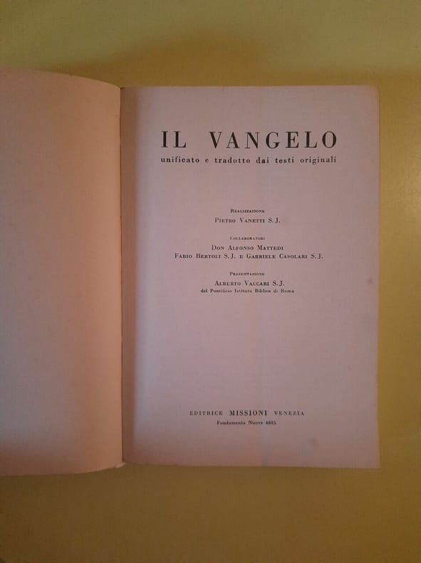 1958 1958. Il Vangelo : Unificato e Tradotto dai Testi Originali / Editrice Missioni 1958