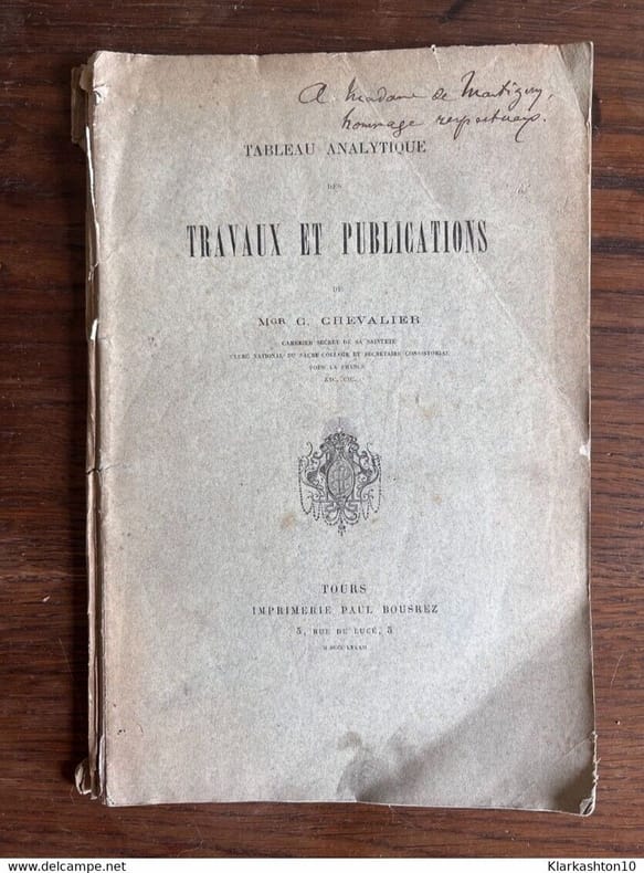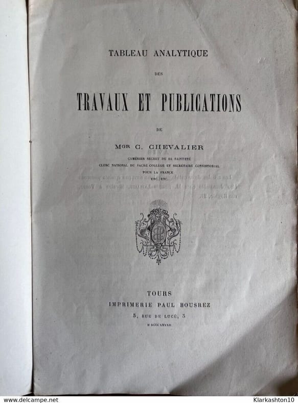 Sans date. Tableau Analytique des Travaux et publications de C. Chevalier