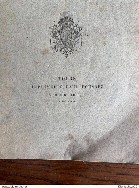 Tours, Bousrez, 1882 in-8, 231 pp., bradel demi-percaline orange, couverture conservée (reliure de l'époque). Un coin cassé. Qqs rousseurs et annotations au crayon. Ex-libris F.-Em. Boutineau.