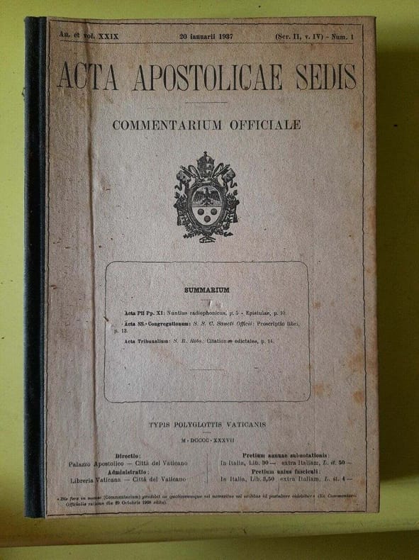 1937 1937. Acta Apostolicae Sedis : Commentarium Officiale 1937