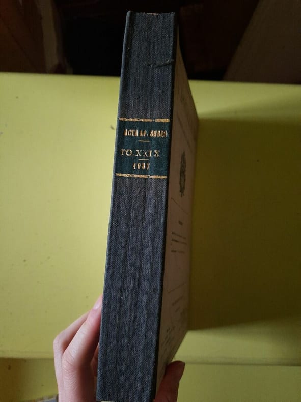 Acta apostolicae Sedis, commentarium Officiale, Annus XXI, volumen XXI latin with stamp from the monastery of Essen (Belgium) hardcover, brown half-leather binding with gold print on the spine, 827 pages and 32 pages supplement , Allegati a, b, c. 27 x 20 cm, in very good condition