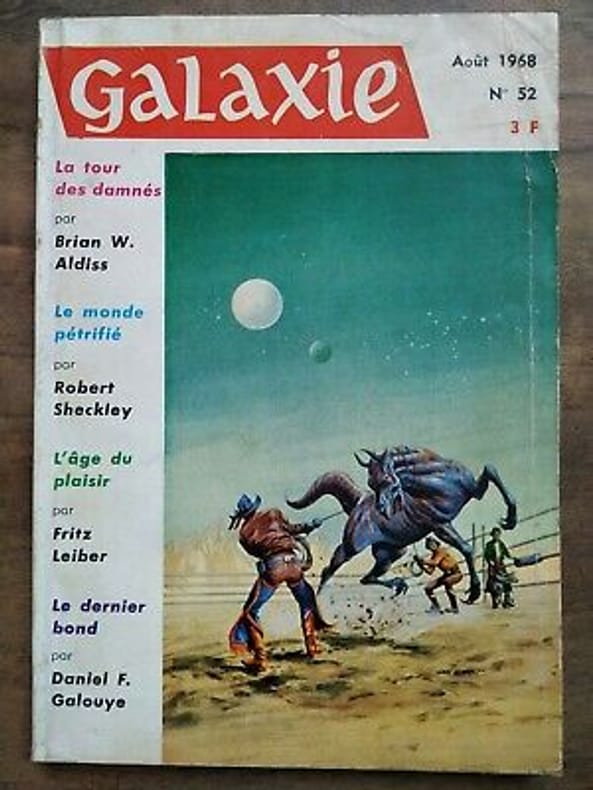 Galaxie anticipation - Science fiction. L'aventure dans l'anticipation. SOMMAIRE: l'age du plaisir (3) par frederik pohl, la tour des damnes par brian aldiss, le monde petrifie par robert sheckley, la gitane et le topologiste par h. hollis, cauchemar...cauchemar... par lafferty, le dernier bond par daniel galouye, sexe a piles et pannes de coeur par david bunch Classification Dewey : 70.49-Presse illustrée, magazines, revues