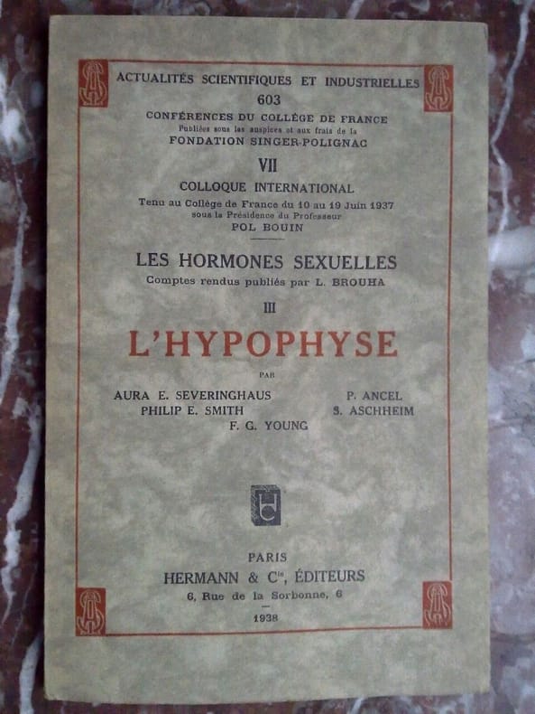 1938 1938. A.E. Severinghaus P. Ancel P.H.Smith Aschheim Young: L'hypophyse 1938 . bon état