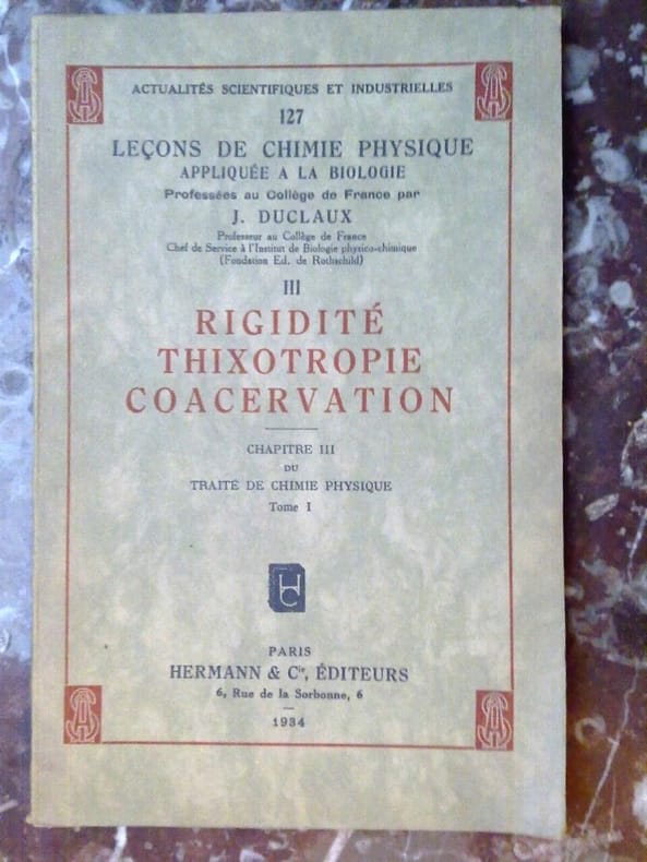 1934 1934. J. Duclaux: Viscosité / Hermann&Cie 1934 . bon état