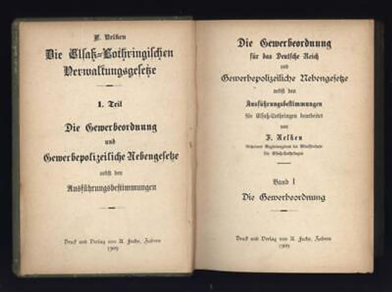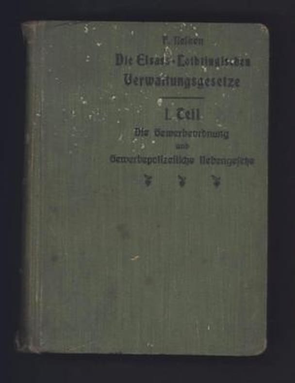 1909 1909. F. NELKEN Die Elsass-Lothringischen Verwaltungsgesetze 1909 Die Gewerbeordnung