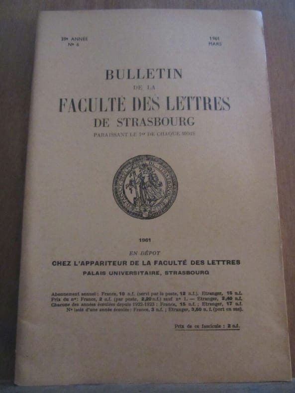 1961 1961. Bulletin de la Faculté des Lettres de Strasbourg 39ème année N°6 mars 1961 Référence: LMA16K. Bulletin de la Faculté des Lettres de Strasbourg 39ème année N°6 mars 1961