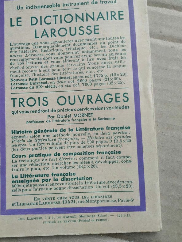 Rapidité d'envoi Tous nos articles sont expédiés le jour même de la confirmation de la commande Soin de l'emballage Un soin particulier est apporté à l'emballage, vos objets voyagent en toute sécurité. A votre écoute Si toutefois un incident devait survenir lors de l'acheminement de votre paquet, n'hésitez pas à nous contacter, nous mettrons tout en oeuvre pour vous satisfaire, en vous proposant un retour, un remboursement ou toute autre soluton à votre convenance. Professionnalisme Les livres que nous vendons sont pour la plupart des livres anciens, nous tâchons d'être le plus objectif possible quant à leur état.