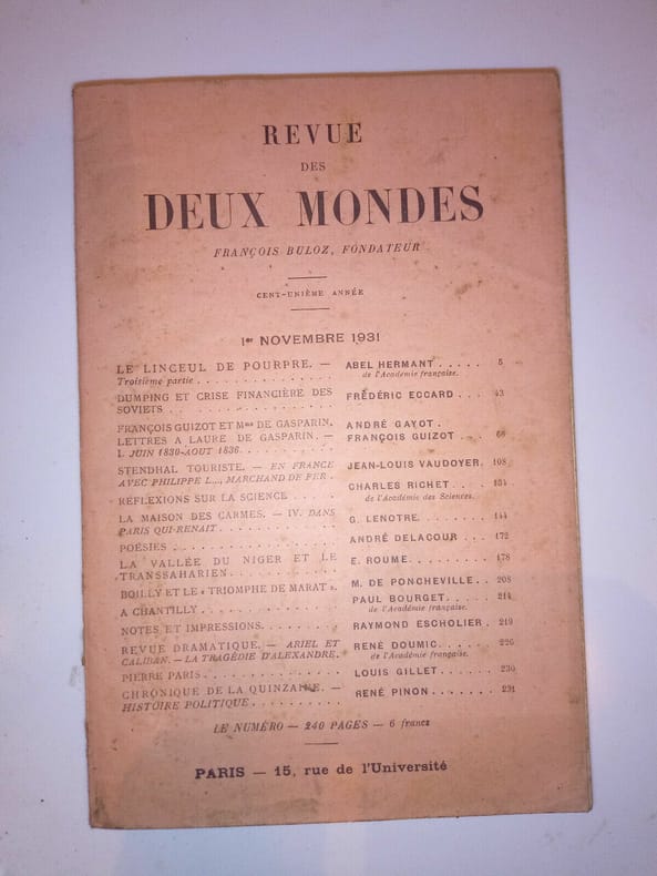Dos partiellement recollé, HASP-357, Revue des Deux Mondes 1931