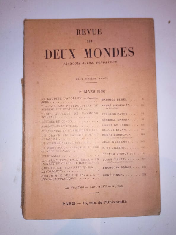 Couverture d'usage, mais numéro complet ; Prix adapté ; GLN-980, Revue des Deux Mondes, Paris 1936