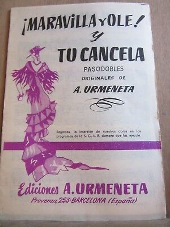 1957 1957. Pasos-dobles: Maravilla y olé-Tu cancela (A. Urmeneta)/ Ediciones A. Urmeneta 1957 . Pasos-dobles: Maravilla y olé-Tu cancela (A. Urmeneta)/ Ediciones A. Urmeneta 1957