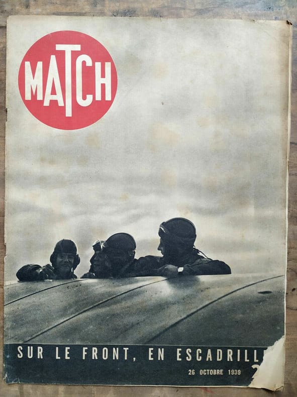 MATCH. 26 octobre 1939. In-Folio. Broché. Bon état, Couv. convenable, Dos satisfaisant, Intérieur frais. environ 46 pages augmentées de nombreuses photos en noir et blanc et en couleurs dans et hors texte - 1er plat illustré d'une photo en noir et blanc. . . . Classification Dewey : 70.49-Presse illustrée, magazines, revues