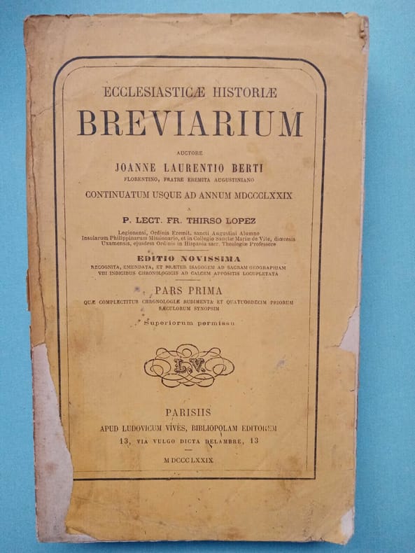 1879 1879. Ecclesiasticae historiae Breviaruim - Joanne Laurentio Berti/ 1879