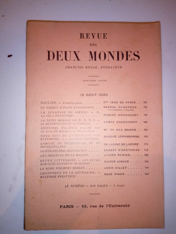 Périodique. La revue des deux mondes, 1930.