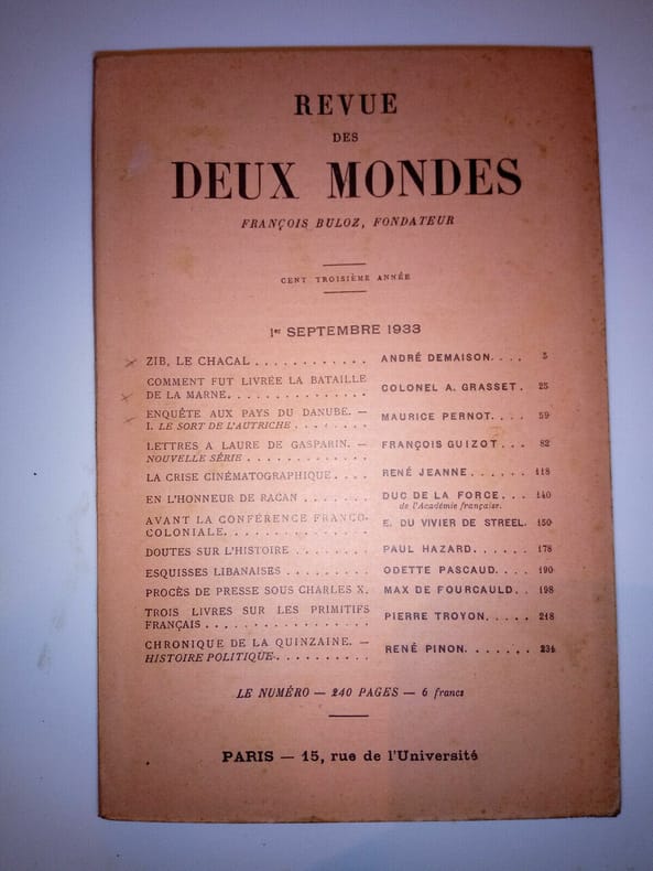 1933 1933. Revue des deux mondes 15 Septembre 1933/ François Buloz