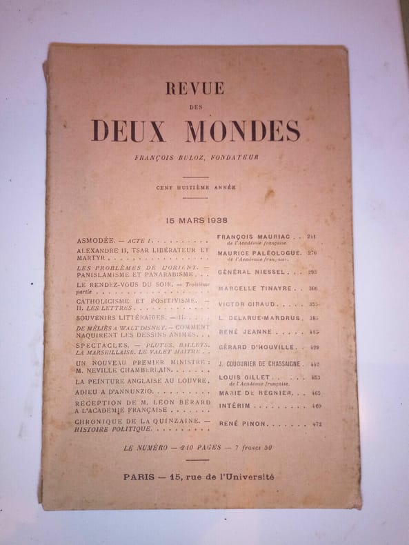 REVUE DES DEUX MONDES. 1938. In-8. Broché. Etat d'usage, Couv. défraîchie, Dos satisfaisant, Quelques rousseurs. Paginé de 243 à 480 pages - des rousseurs etTampon sur le 1er plat.. . . . Classification Dewey : 70.49-Presse illustrée, magazines, revues