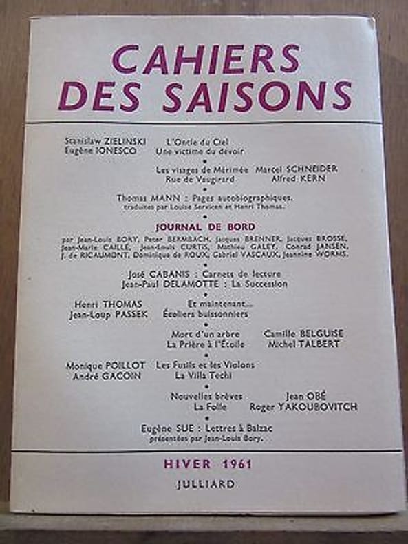 1961 1961. Cahiers des Saisons N°24 Hiver 1961/ Julliard 1961. SP non coupé