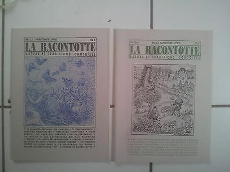1998 1998. 2 numéros de l'excellente revue trimestrielle la Racontotte. cahiers d'écologie rurale consacrés à la nature et aux traditions franc comtoises 48 pages chacun avec illustrations lot en TRES BON ETAT chaque numéro est complet et solide sans déchirures ni annotations les intérieurs propres