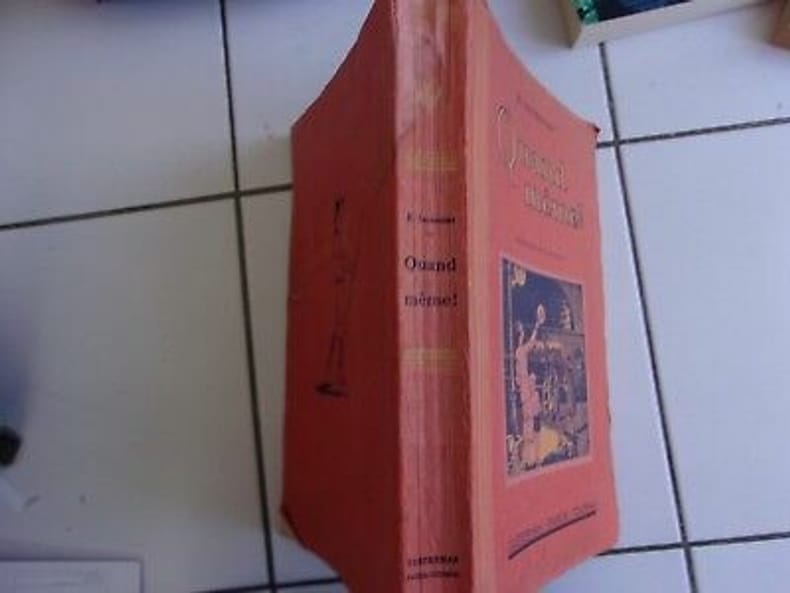 1920 1920. grand format broché 246 pages aux éditions Casterman; non daté mais assurément ancien ( début 20 ème siècle) en plutôt bon état pour son âge; complet intérieur sans annotations ni déchirures; intérieur globalement propre ( auréoles en haut des toutes dernières pages et traces rouges toujours en haut des dernières pages -sans doute la couverture qui a 'bavé') peu de pliures sur la couverture la tranche n'a pas de manque mais est fendue aux charnières aux extrémités (très facile à consolider) l'ensemble est bien solide