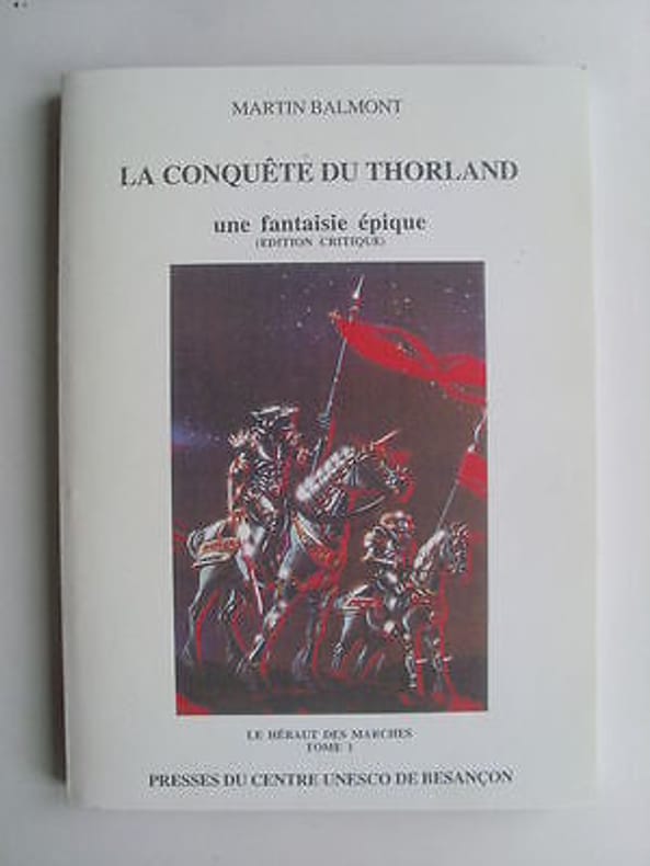 Besancon 1998 1998. ouvrage broché 235 pages édité par les Presses du Centre Unesco de Besançon en 1998. un petit collector et un véritable tour de force puisqu'il s'agit là du premier roman d'Heroic Fantasy entièrement construit sous forme épistolaire. Il retrace une expédition militaire mêlant les Croisés du dieu Ukko les prêtres du dieu Odin les magiciens et les adeptes du dieu Thor. Un dizaine de personnages s'écrivent s'espionnent et s'assassinent sur fond de croisade contre les orcs. Il appartient à un cycle de quatre romans ; Particulièrement marqués par un humour décapant et une tension à la fois policière et épique les romans de Martin Balmont explorent des dimensions encore vagues de l'héroic fantasy : ses relations avec les genres voisins que sont le roman comique et le roman policier. en TRES BON ETAT ; complet et solide; sans déchirures intérieur propre et frais