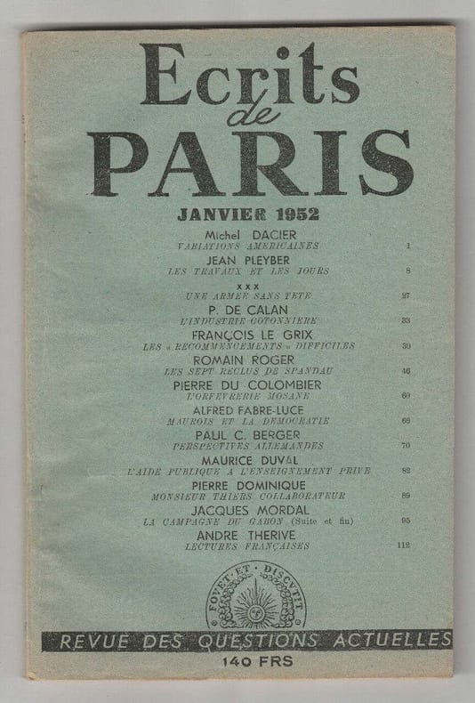 1952 1952. Exemplaire en bon état d'usage. Livre broché couverture souple. 124pp
