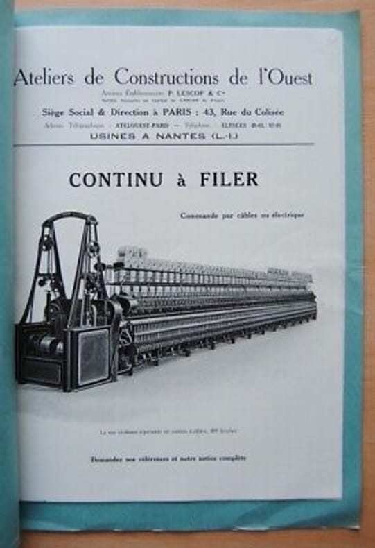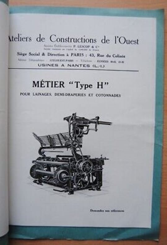 Sans date. ATELIERS DE CONSTRUCTIONS DE L'OUEST Machines Tissage