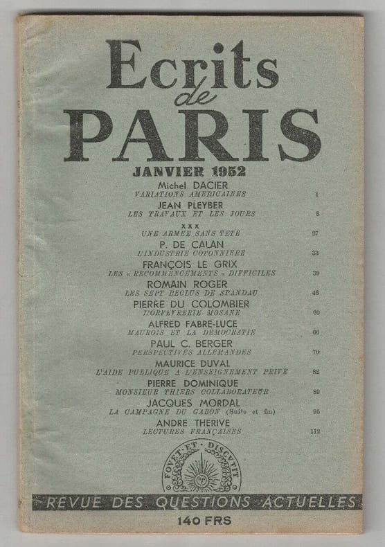 1952 1952. Exemplaire en bon état d'usage. Livre broché couverture souple. 124pp