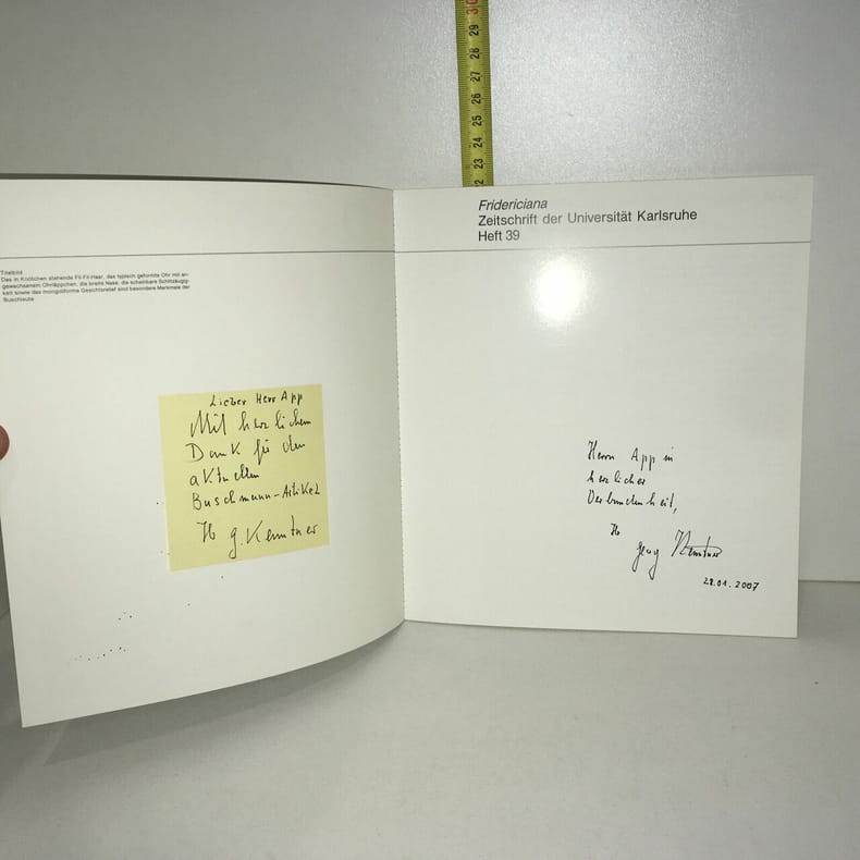 Sans date. Fridericiana Zeitschrift der Universität Karlsruhe. Heft 39 - Wechselbeziehungen zwischen Raum Mensch und Kultur von Georg Kenntner. Livre en bon état d'usage. Livre en Allemand. Livre dédicacé par l'auteur. Réf. ZZ-5852