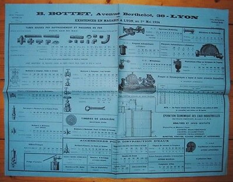 Sans date. Affiche Pub B. BOTTET à Lyon TUBES ROBINETTERIES
