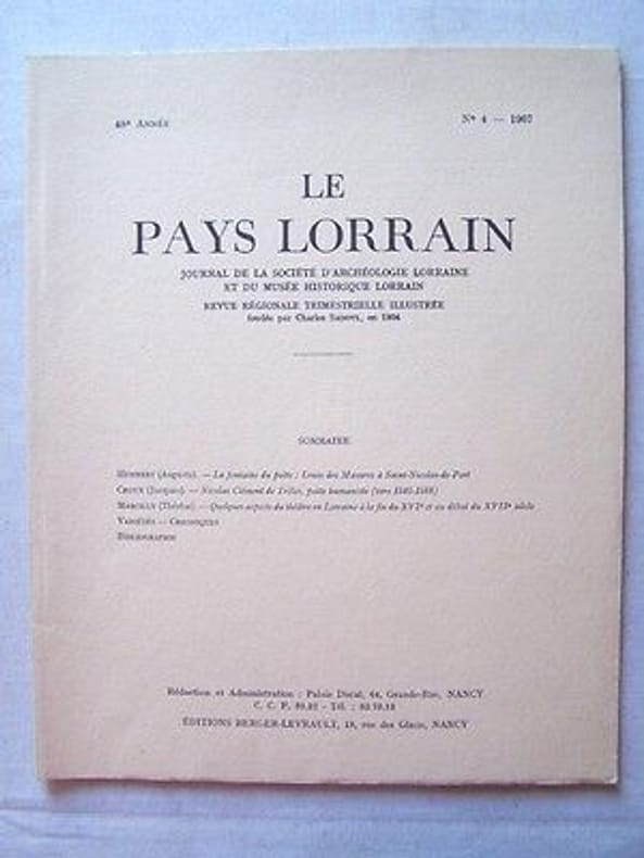 1967 1967. Revue le Pays Lorrain N°4 1967 Archéologie Histoire