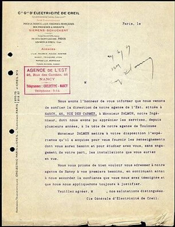 Sans date. Ancienne facture de la Compagnie Générale d'électricité de Creil (60)