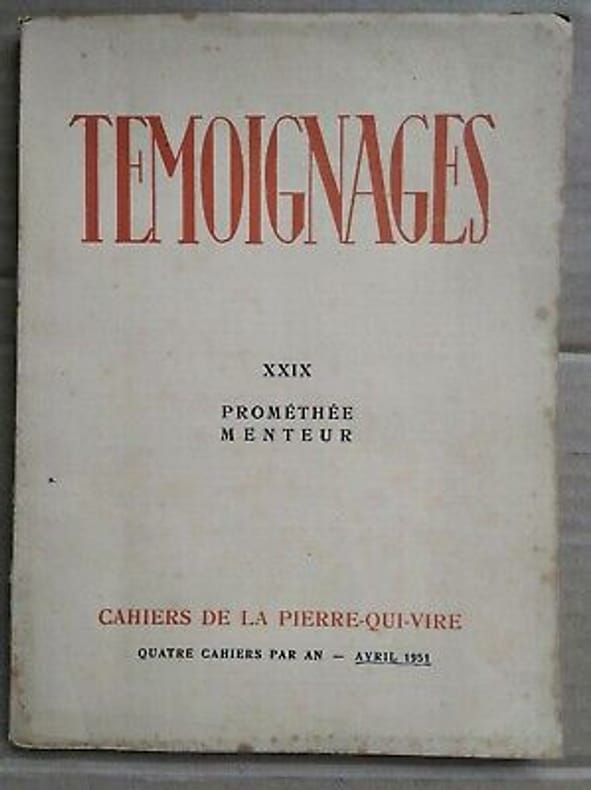 1951 1951. Temoignages XXIX : Prométhée Menteur / La Pierre-Qui-Vire 1951