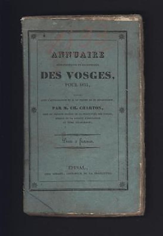 Sans date. Charles CHARTON Annuaire administratif et statistique des VOSGES pour 1833