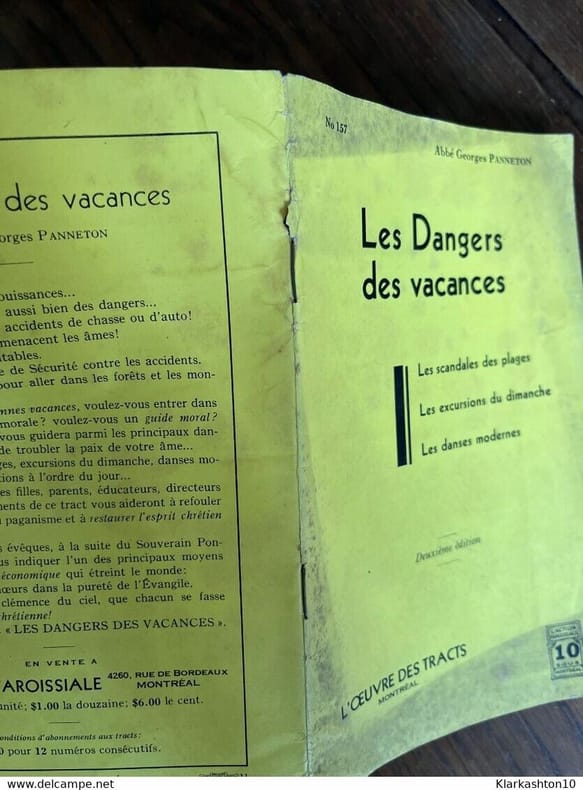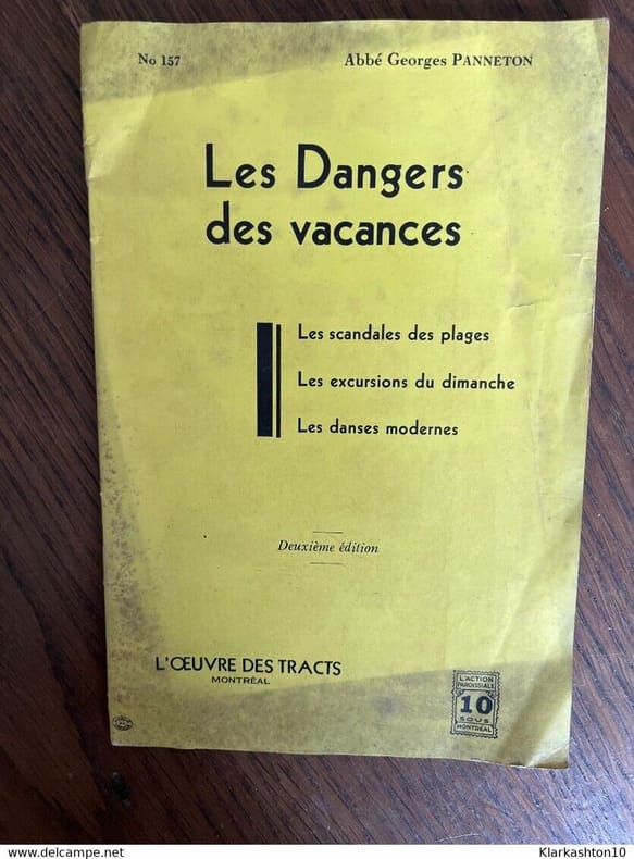 deuxième édition Sans date. Abbé Georges Panneton: Les Dangers des vacances. Deuxième édition
