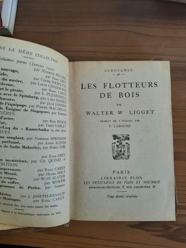 Plon 1933 1933. Walter W. Ligget - Les Flotteurs de Bois / Plon 1933